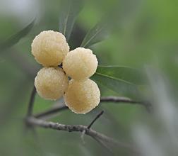楊梅屬于楊梅科楊梅屬亞熱帶小喬木或灌木植物,該屬有60多個種,中國已知的有楊梅、白楊梅、毛楊梅、青楊梅、大楊梅和全緣葉楊梅。白楊梅,樹勢強健,樹冠半圓形,葉倒披針形或倒長卵形,長7.57厘米,寬2.37厘米,先端圓鈍,間或漸尖,邊緣間或有鋸齒,質薄,淡綠色。果實圓形。白楊梅是楊梅中的稀有品種,顏色從粉紅到乳白不等,而其中尤其以通體乳白的水晶楊梅最為稀有,相傳在古代作為貢品。