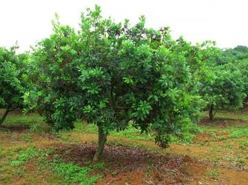當年林地可間種一年生菜、藥或綠肥,以提高土壤肥效。幼樹以速效性肥料為主,氮、磷、鉀配合施用,常年施肥2-3次。成年樹一年追肥兩次,第一次在萌芽抽梢前的冬末春初,逐株根施農家肥或過磷酸鈣1-2公斤;或每株施硫酸鉀1千克加尿素0.2千克,或尿素0.25千克加焦泥灰15-20千克。施后即覆土。第二次是在采果后,占全年施肥量50-55%,按多結果多施肥的原則,逐株在樹冠滴水線下開10-20厘米的溝,施氮肥0.5-1公斤,0.3-0.5公斤
